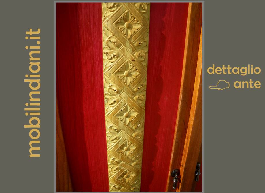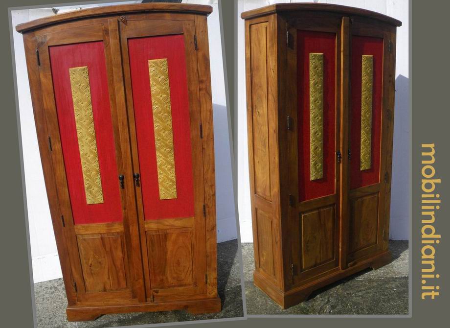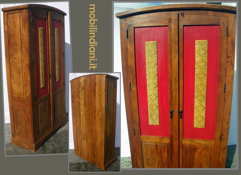 Disponibilità 1Armadio etnico in sheesham (noce) massello. 2 ante rosse con fregio centrale 4 ripiani interni. Cm.100x40 h.190 Paese Rajasthan, India PER INFO COSTI SPEDIZIONE CHIEDI su WhatsApp o via mail: info@mobilindiani.it