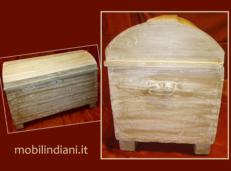 Baule antico con coperchio bombato. Periodo '800 in legno decapato chiaro. Oggetto integro e ben conservato con piccoli segni del tempo che testimoniano l'autenticità del pezzo. Maniglie e placchetta in ferro battuto, SENZA SERRATURA Cm.90x46 h.52. Origine Italia COSTO TRASPORTO €. 49,85 Iva Inclusa. Per costi trasporto Isole, chiedi info su WhatsApp o mail: info@mobilindiani.it