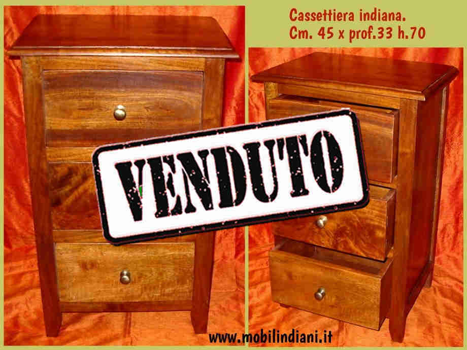 Cassettiera indiana con 3 cassetti. Legno sheesham massello (noce) Cm.45 prof.33 h.70 Paese India