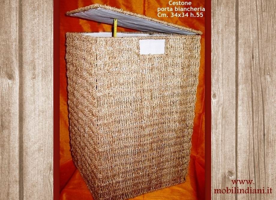 Disponibilità 1Cestone porta biancheria, foderato internamente in tessuto colore avorio. Cm.34x34 h.55 Paese Filippine. QUESTO ARTICOLO NON VIENE SPEDITO. SOLO RITIRO PRESSO NS. SEDE, COSTO ZERO.