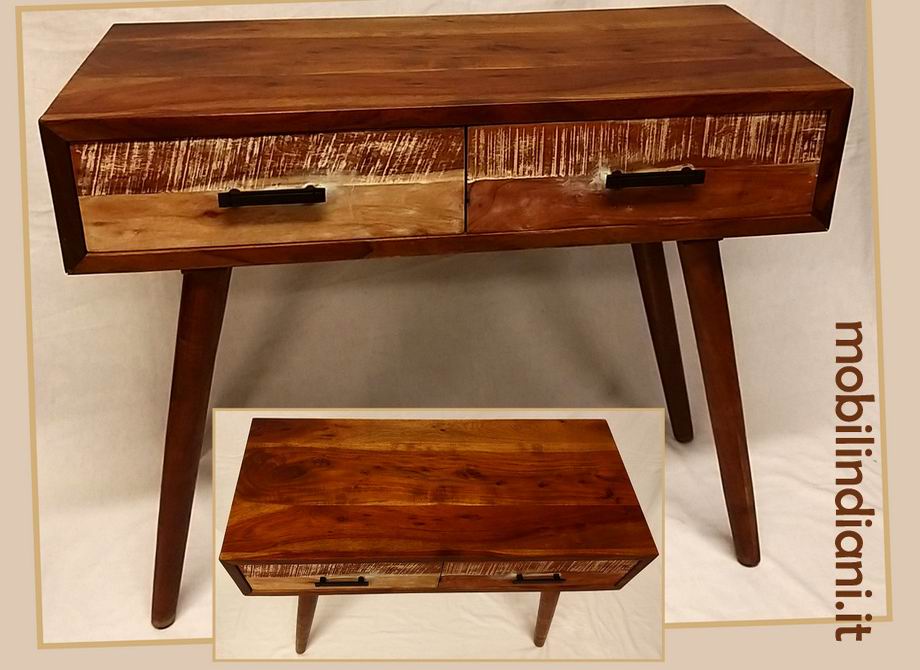 Disponibilità 1Consolle etnica moderna con cassetti. Legno massello acacia, con contrasti bianco anticato. Design essenziale e al tempo stesso elegante. Misura cm.90x40,5 h.79 Paese India PER INFO COSTI SPEDIZIONE CHIEDI su WhatsApp o via mail: info@mobilindiani.it