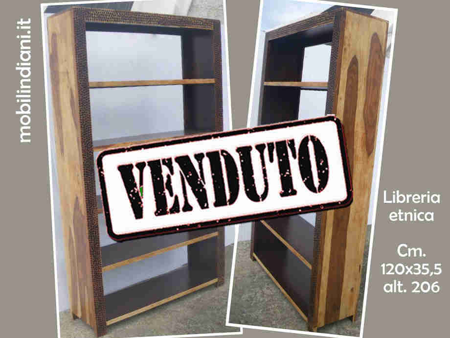 Mobile soggiorno orientale. Libreria etnica alta in sheesham (noce) colore naturale. Cm.120x35,5 h.206 Paese India