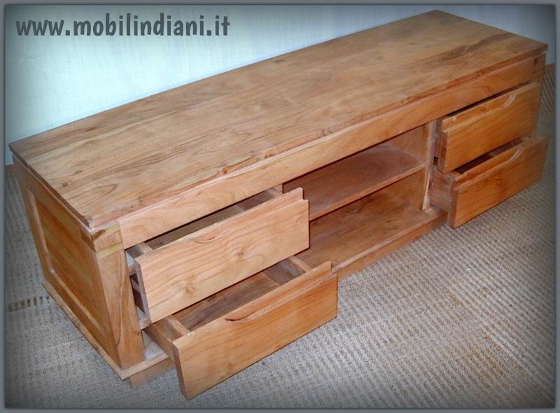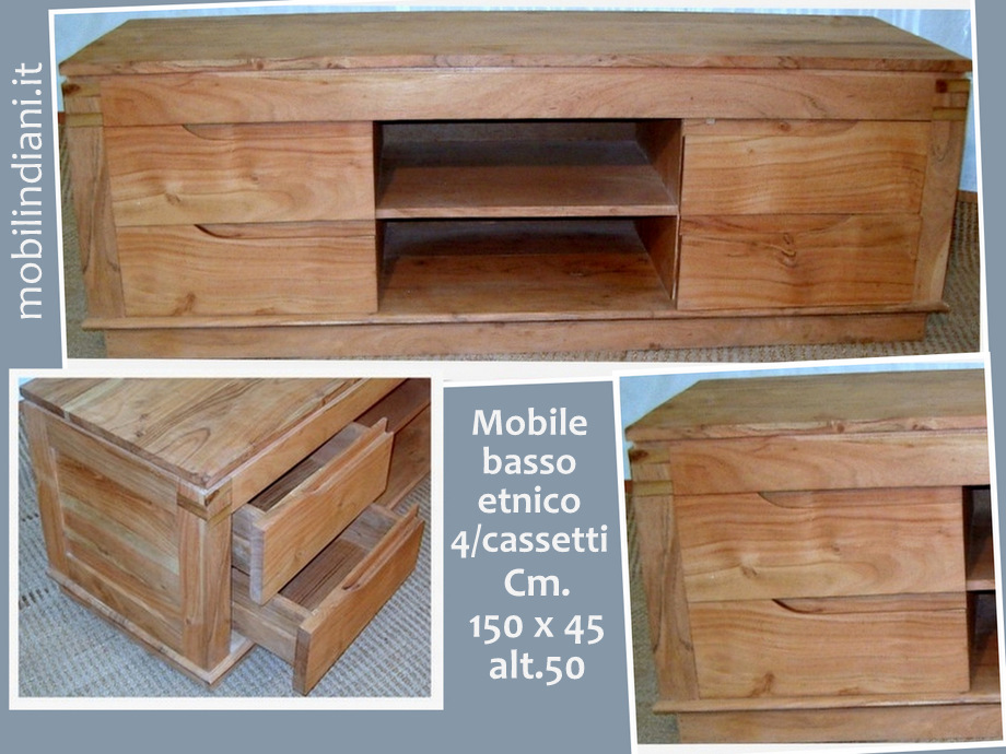 Mobile etnico legno acacia massello, finitura naturale 4 cassetti + vani a giorno. Cm.150x45 h.50 Origine India PER INFO COSTI SPEDIZIONE CHIEDI su WhatsApp o via mail: info@mobilindiani.it
