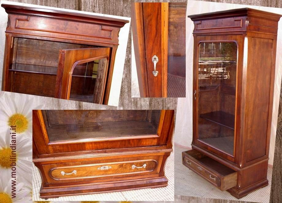 Disponibilità 1Antica vetrina 1anta, cassetto e ripiani, maniglie in bronzo còeve. Periodo 1800 - Cm.98x48 h.196 RITIRO PRESSO NS. SEDE COSTO ZERO - Per info chiedi su WhatsApp o mail: info@mobilindiani.it