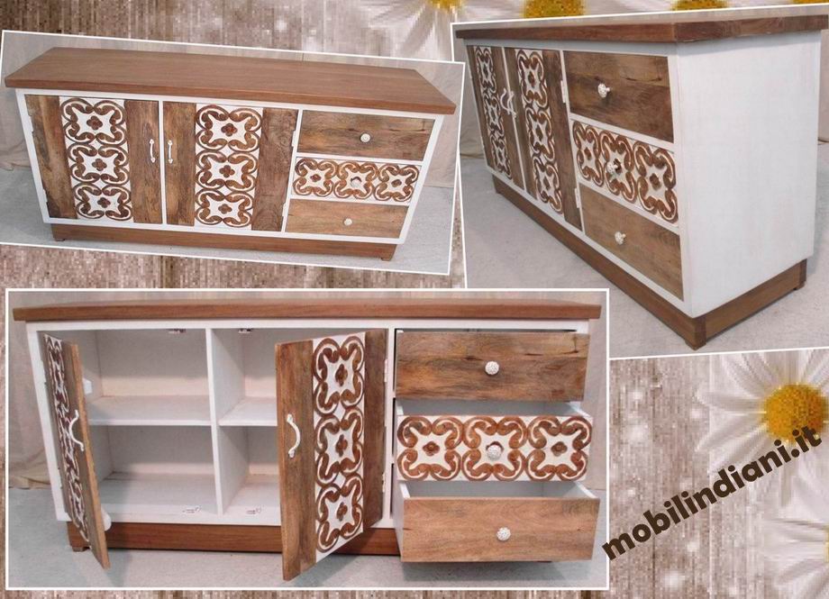Disponibilità 1SCONTO SE ACQUISTI IN NEGOZIO. Mobile etnico da soggiorno bicolore. Legno di acacia con ante e cassetti intagliati. Maniglie e pomelli in metallo. PEZZO UNICO Cm.164x47,5 h.81 Paese India PER INFO COSTI SPEDIZIONE CHIEDI su WhatsApp o via mail: info@mobilindiani.it