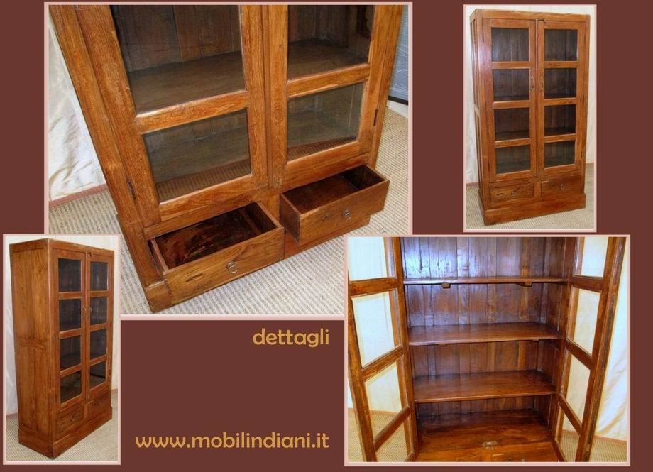 Disponibilità 1Vetrina indiana in teak riciclato. 2 ante con ripiani interni + 2 cassetti. Cm.93x42 h.183 Paese India. Restauro incluso PER INFO COSTI SPEDIZIONE CHIEDI su WhatsApp o via mail: info@mobilindiani.it