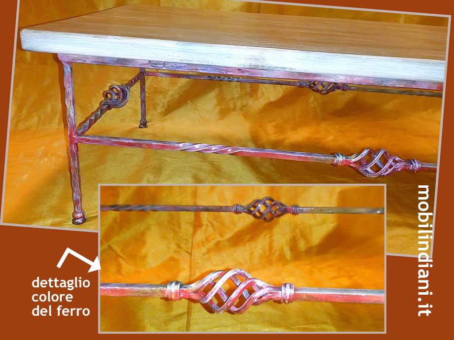 Disponibilità 1Tavolino artigianale con piano in legno massello decapato e base in ferro forgiato a mano. Cm.120x57 h.38 Paese Italia PER INFO COSTI SPEDIZIONE CHIEDI su WhatsApp o via mail: info@mobilindiani.it