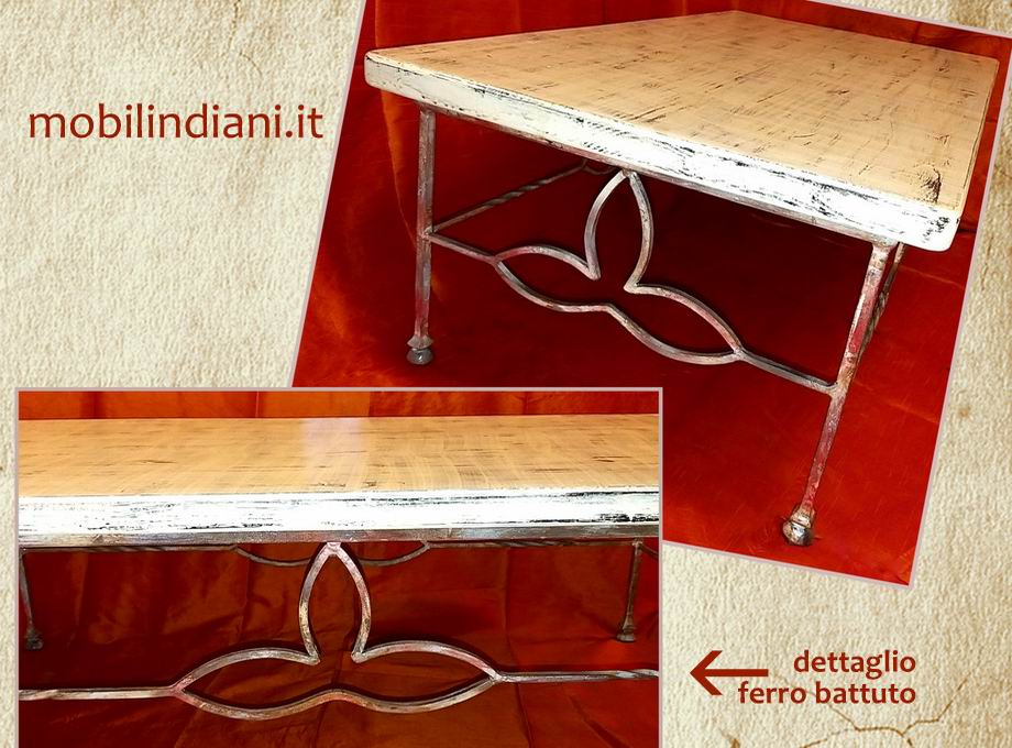 Disponibilità 1Tavolino in stile shabby-chic, realizzato appositamente per un aspetto "invecchiato" Piano in legno massello, base in ferro forgiato con infinite sfumature. Cm.110x57,5 h.37 PER INFO COSTI SPEDIZIONE CHIEDI su WhatsApp o via mail: info@mobilindiani.it