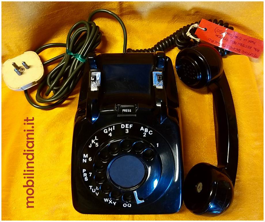 Telefono americano in bakelite nero anni 50' Mod. WESTERN BELL SYSTEM - Made USA. Testato e funzionante alla presa principale. Ottime condizioni come da foto. COSTO TRASPORTO €. 12,81 Iva Inclusa. Per costi trasporto Isole, chiedi info su WhatsApp o mail: info@mobilindiani.it